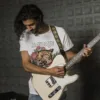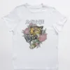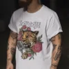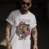 Camiseta manga corta detalle doblez manga, ilustración ROCK color blanca.