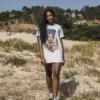 Vestido camiseta, detalle abertura, más largo por detrás.